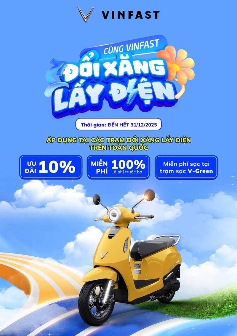Tiếp nối thành công của chuỗi sự kiện “Đổi Xăng Lấy Điện”, từ ngày 05/11/2025, xe máy điện VinFast tiếp tục khẳng định vị thế tiên phong trong lĩnh vực phương tiện di chuyển xanh tại Việt Nam.
